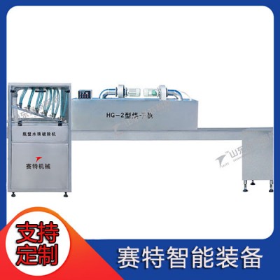 HG-2型烘干机淘汰了原有的毛刷烘干机,是##近开发设计的##产品。该机采用冷热风交替吹瓶的原理,先用高压风流将瓶壁水珠破碎,然后再用热风烘干。该机##的特点是避免了原始的毛刷刷瓶、毛刷损耗严重,频繁更换,容易脏瓶、倒瓶等现象造成的维护麻烦、运行费用高等弊端,而是采用高压风将瓶外壁吹干,##瓶壁清洁无污物,干瓶效果好,容易贴标、易于操作、维护方便。
