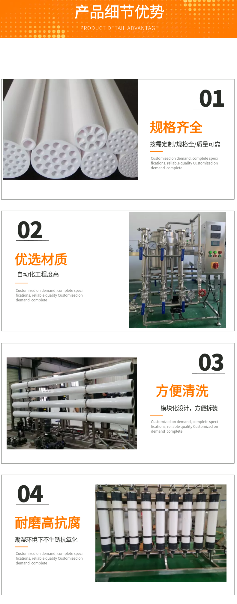 膜系统使用寿命长,可恢复性能好,抗微生物污染能力强,能长时间维持较高的渗透通量和截留率。