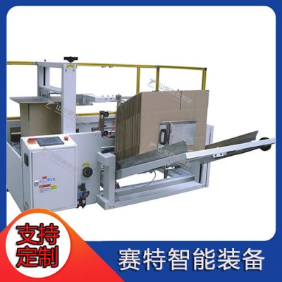 ◎采用立式储存纸板方式,并可随时补充纸箱板,不需停机;